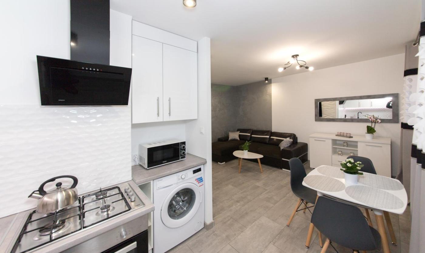 Apartament z 1 sypialnią. Boasting a private entrance, this apartment features 1 living room, 1 separate bedroom and 1 bathroom with a walk-in shower and a hairdryer. The fully equipped kitchen features a stovetop, a refrigerator, kitchenware and an oven. This wheelchair accessible apartment has a washing machine, a seating area with a flat-screen TV and a roll-in shower. The unit has 2 beds. Apartament - 4 osobowy. Powierzchnia pokoju ok.: 40 mkw.