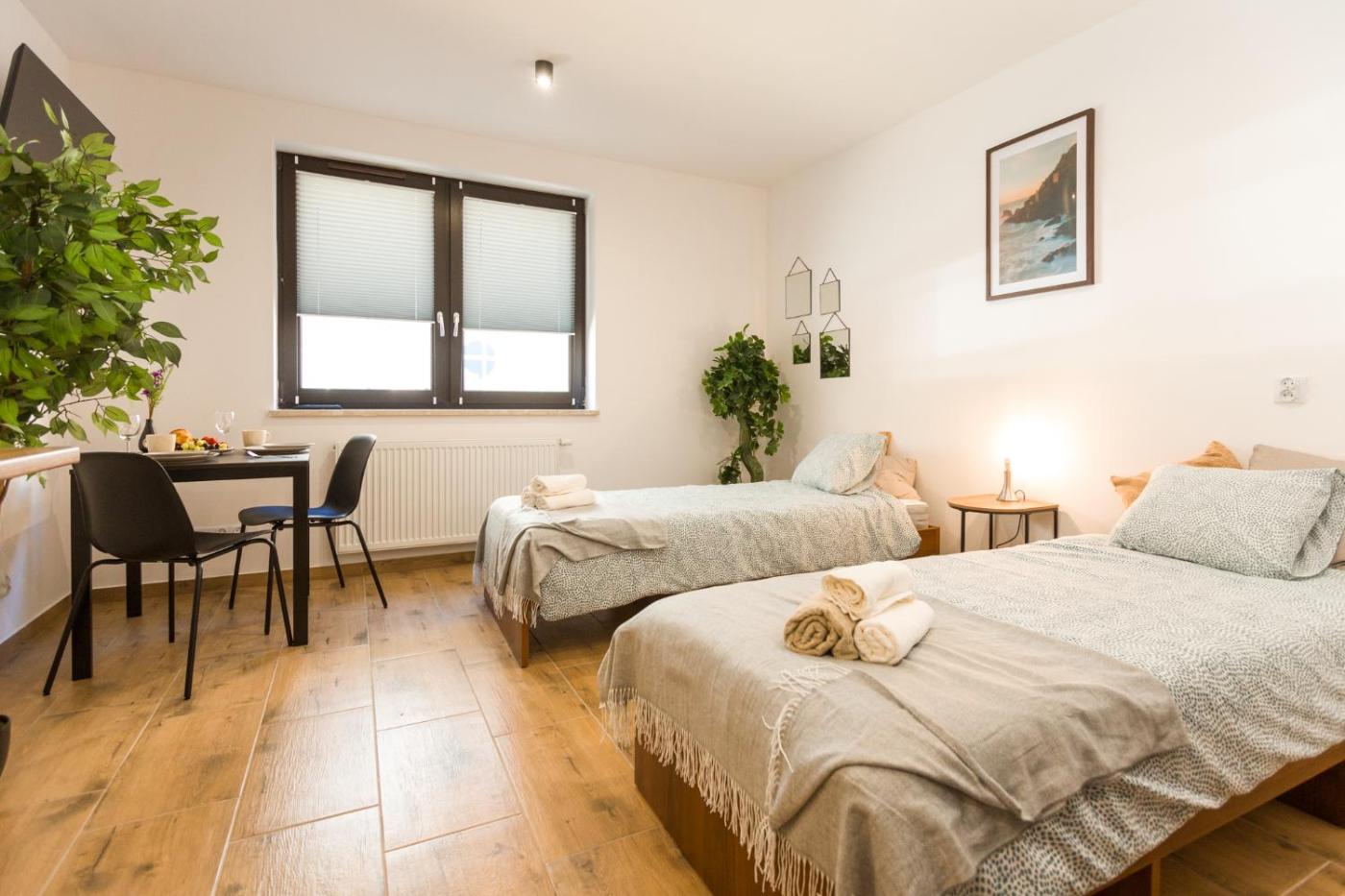 Apartament typu studio. This apartment consists of 1 bedroom, a kitchenette and 1 bathroom with a shower and a hairdryer. The well-fitted kitchenette has a stovetop, a refrigerator, kitchenware and a microwave. This apartment features a washing machine, a tea and coffee maker, flat-screen TV with satellite channels, as well as chocolate for guests. The unit offers 2 beds. Apartament - 2 osobowy. Powierzchnia pokoju ok.: 25 mkw.