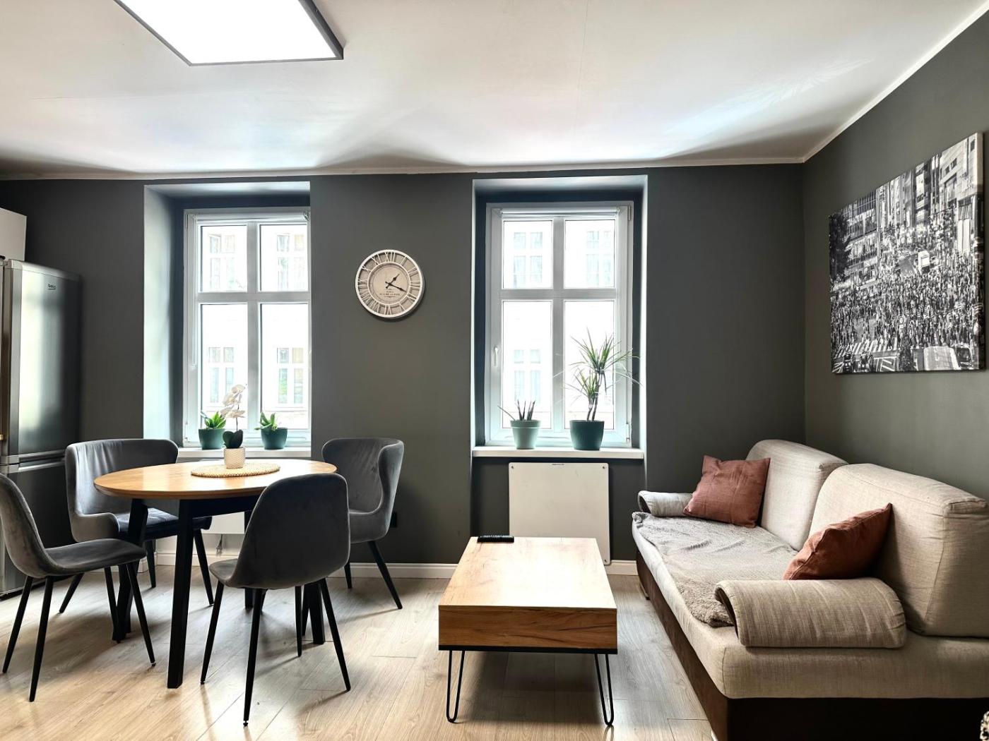 Apartament z 2 sypialniami. This apartment is comprised of 1 living room, 2 separate bedrooms and 1 bathroom with a shower. In the kitchen, guests will find a stovetop, a refrigerator, kitchenware and an oven. The apartment features parquet floors, a seating area with a flat-screen TV, a washing machine, soundproof walls as well as a quiet street view. The unit offers 3 beds. Apartament - 6 osobowy. Powierzchnia pokoju ok.: 40 mkw.